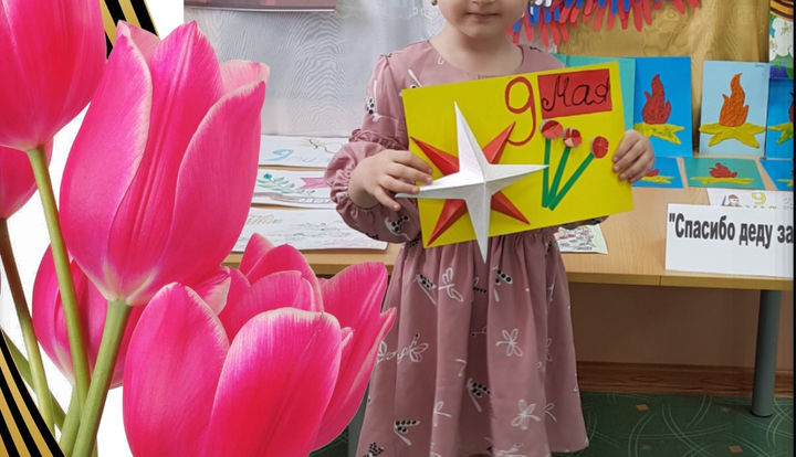 В мае месяце, уже по традиции нашего ДОУ, ребята младшей группы приняли участие в праздничной программе, посвященной 9 мая. Дню Победы была посвящена целая тематическая неделя. Ребятам рассказывали об этом великом празднике, читали стихи, знакомили с музыкальными композициями. По инциативе руководства ДОУ была организована выставка творческих работ детей совместно с родителями под названием «Спасибо деду за Победу!». Все участники получили Дипломы и памятные призы.
